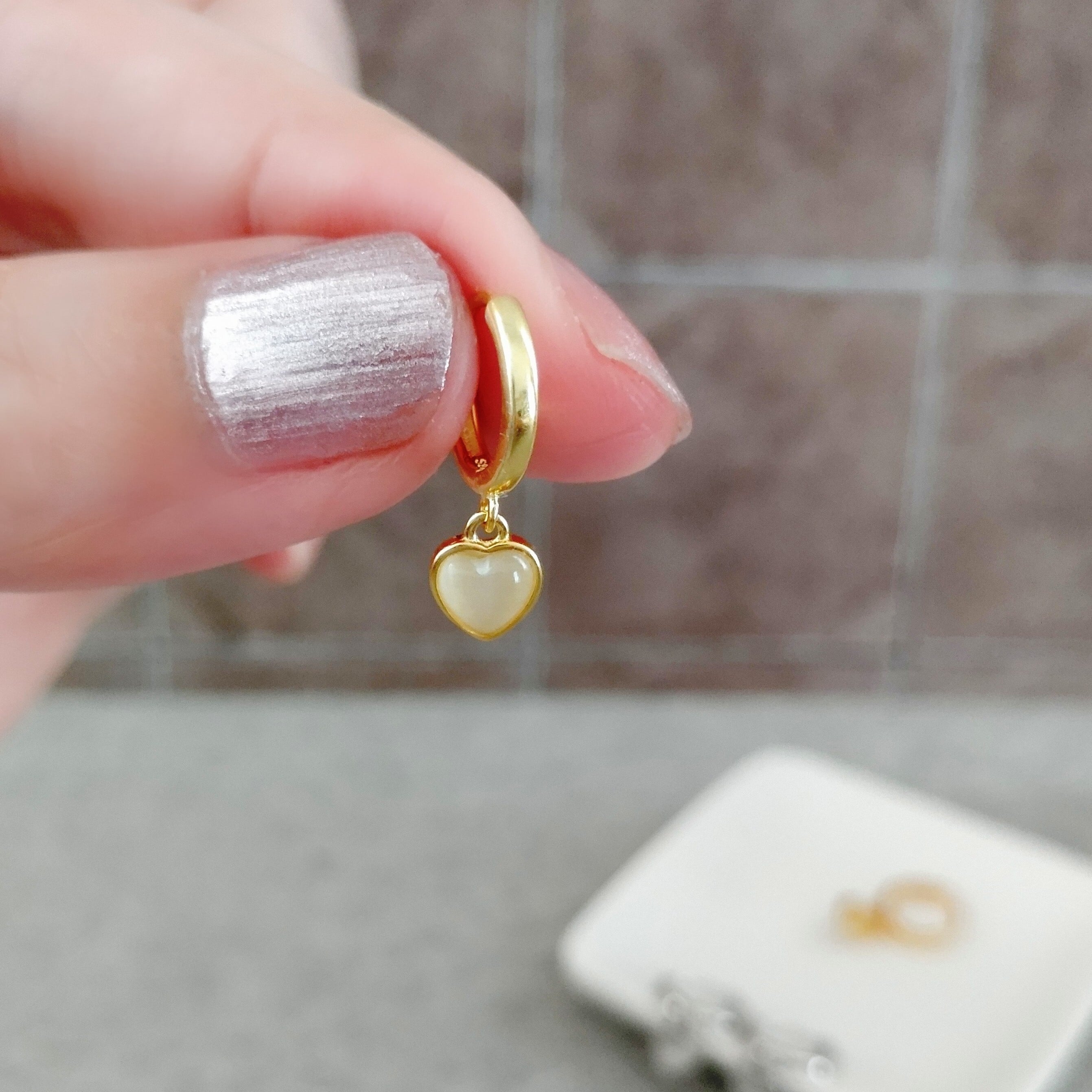 魅力的なオパールが施されたハート型ピアス。