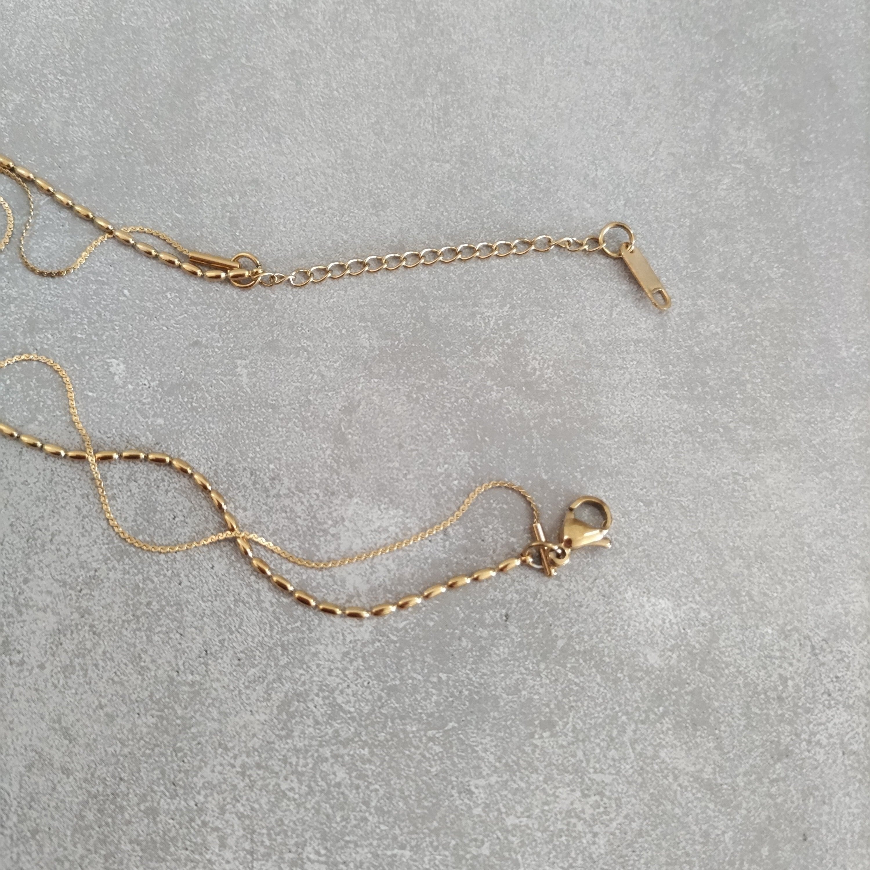 2連のチェーンデザインで、この1本でレイヤードコーデの完成です。