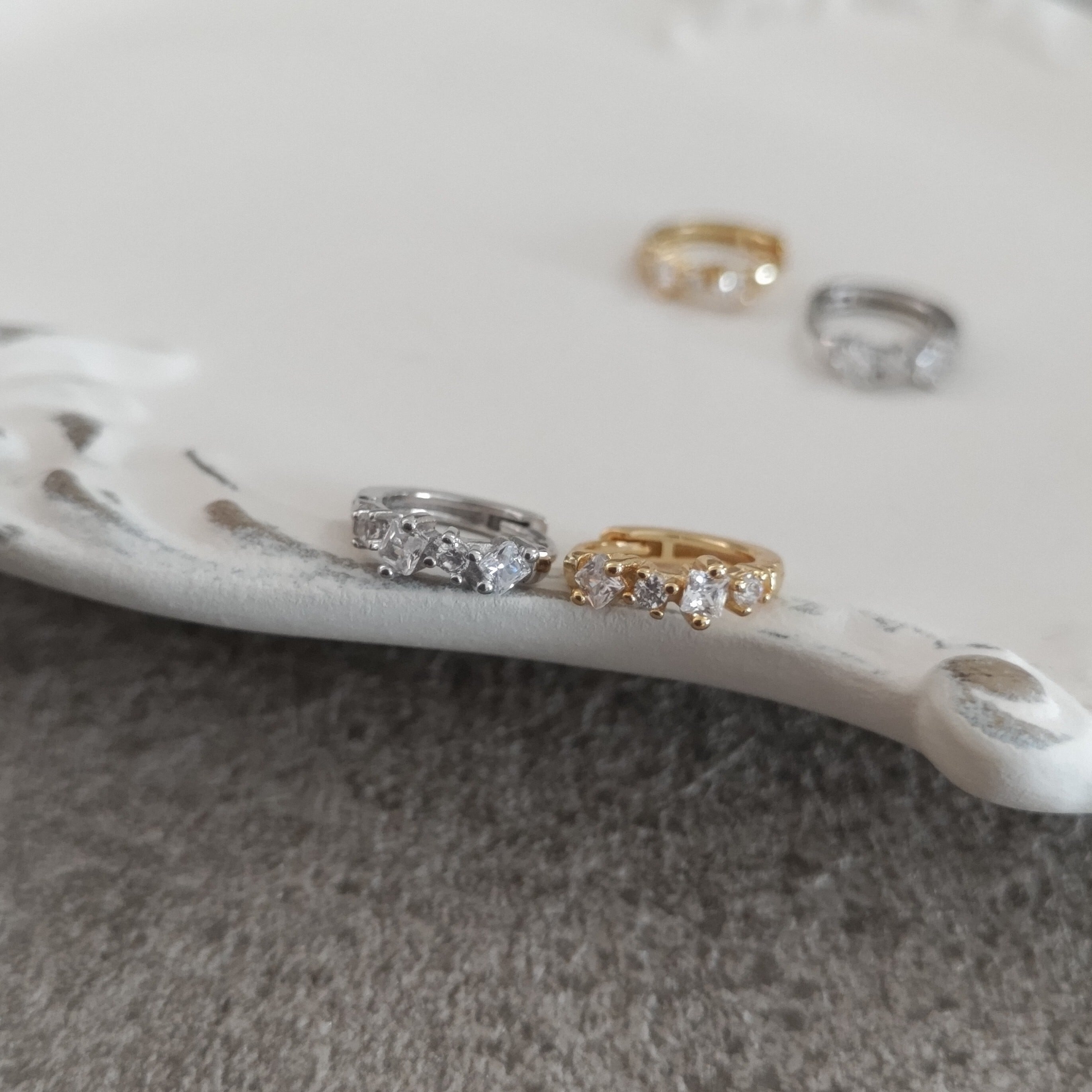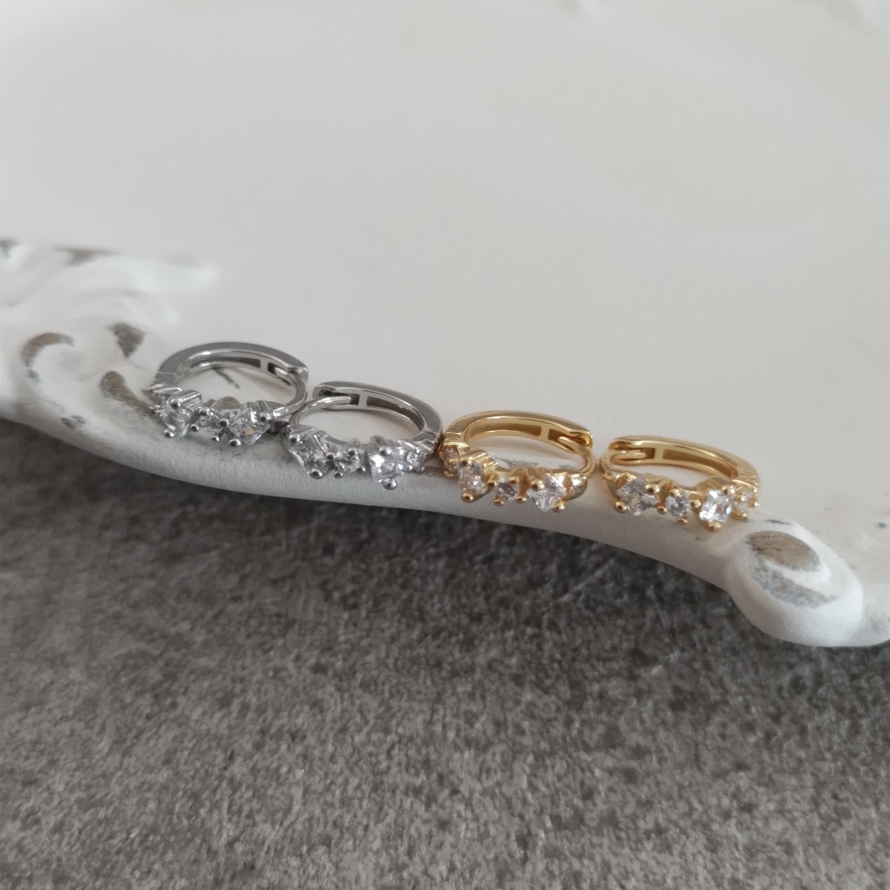 輝くジルコンが大小4つの素敵なデザインピアスです。
