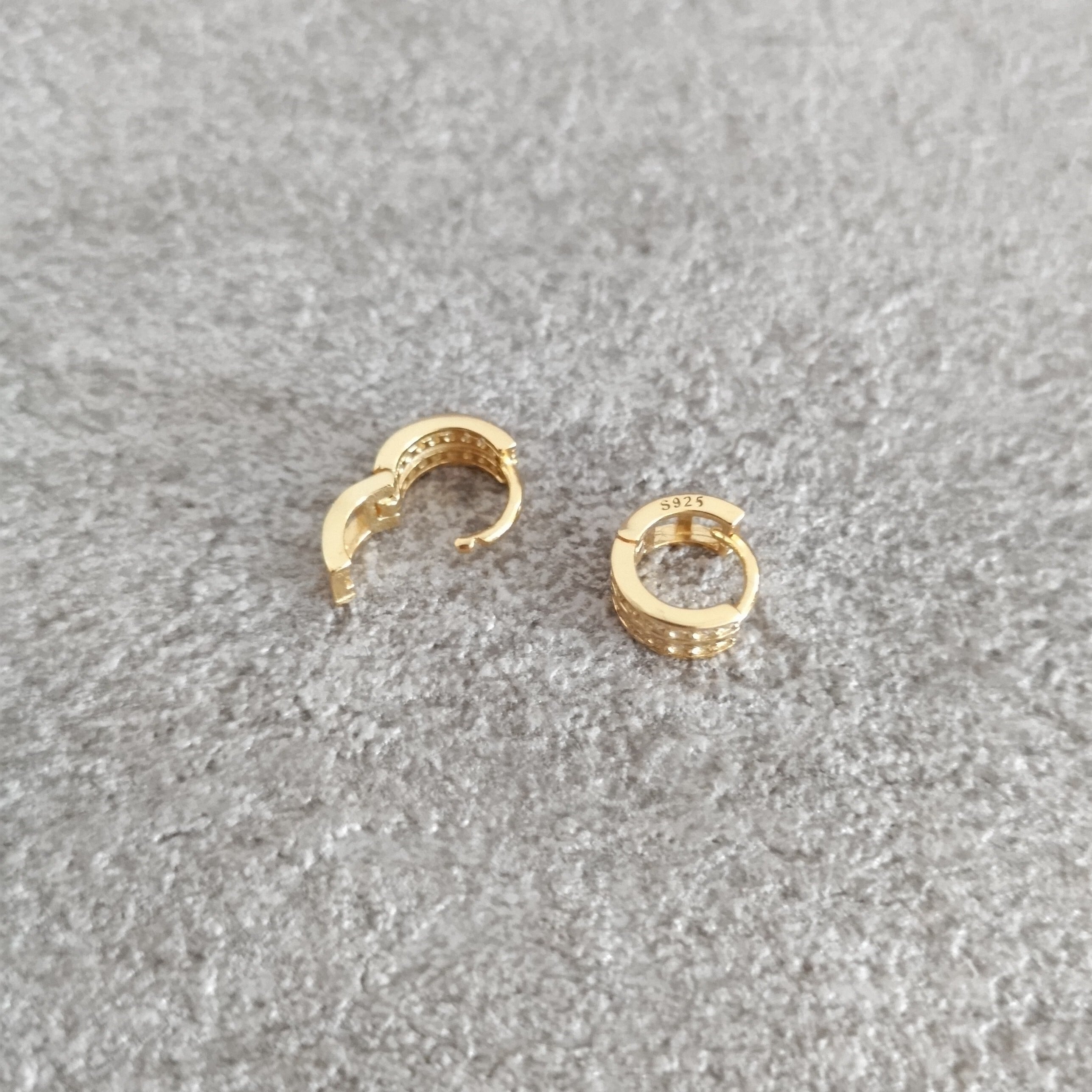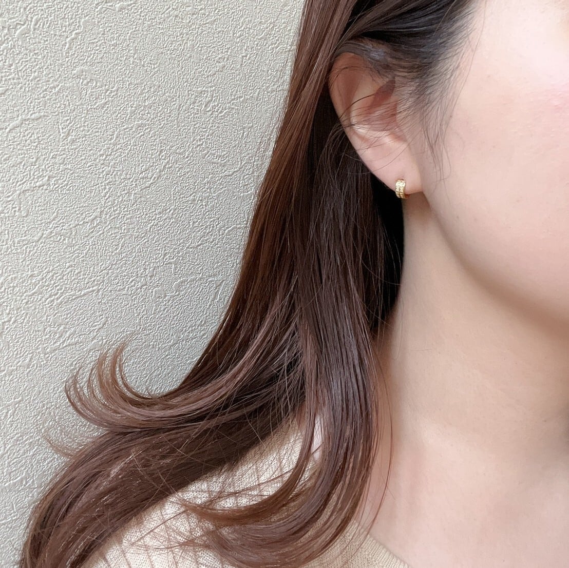 シンプルながらも存在感のある、2列のCZが煌めくフープピアスです。