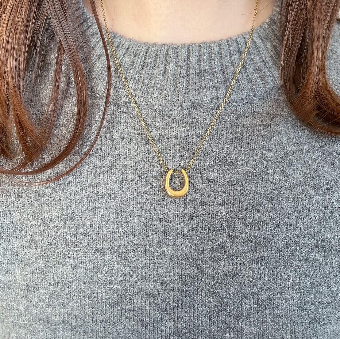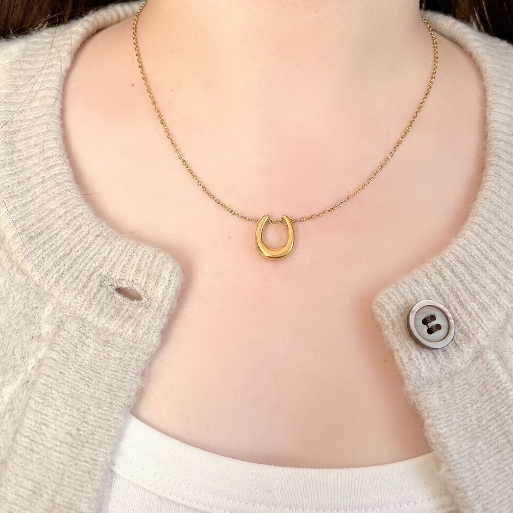 幸運を象徴する馬蹄型は、シンプルでありながら5段階に調節できる長さで、さまざまなスタイルに合わせやすいのがポイントです。