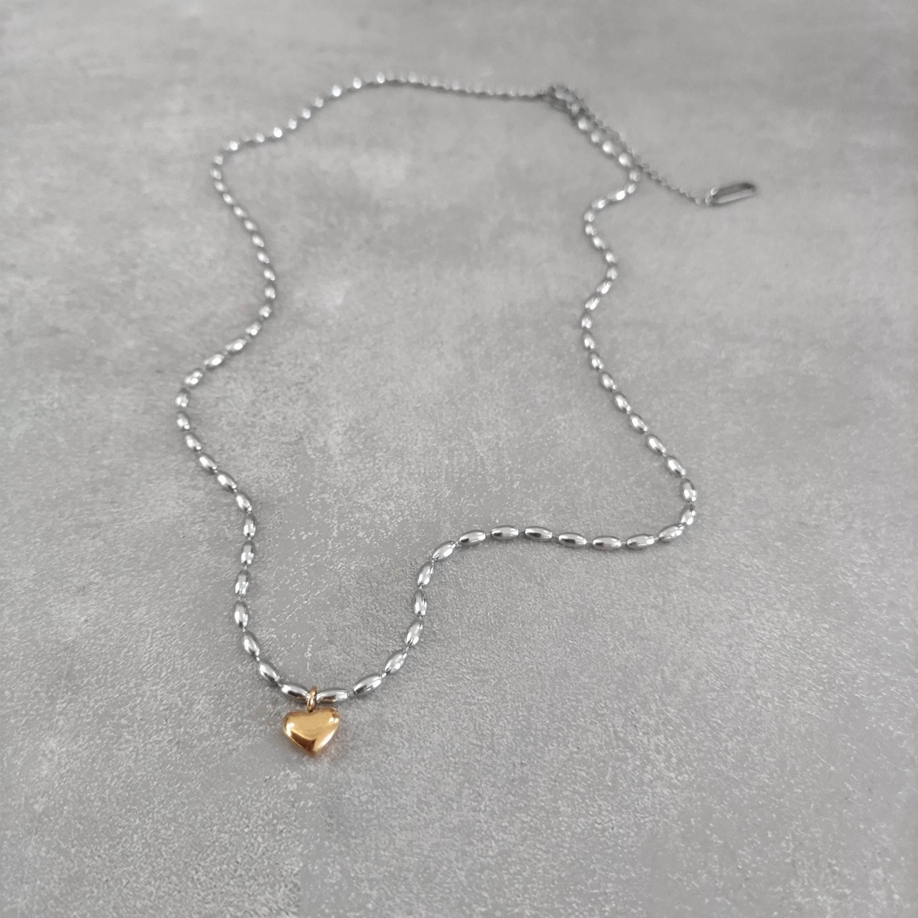 ころんと小さなハートチャームがさりげなく煌めき、大人の可愛さを引き立ててくれるデザインです。