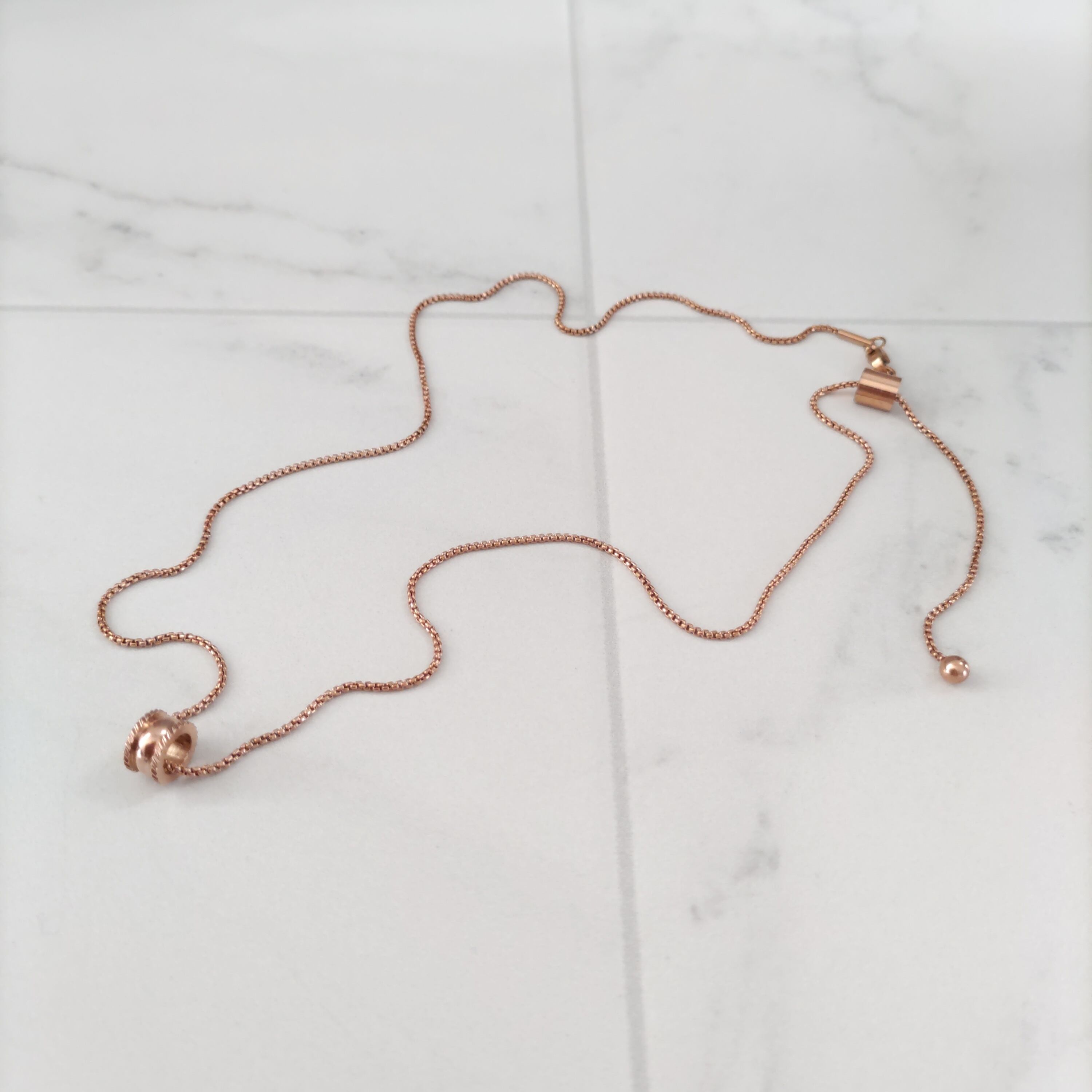 スライドするだけで長さが自由に変えられるネックレスがバレル(樽)のチャーム付きで仲間入り