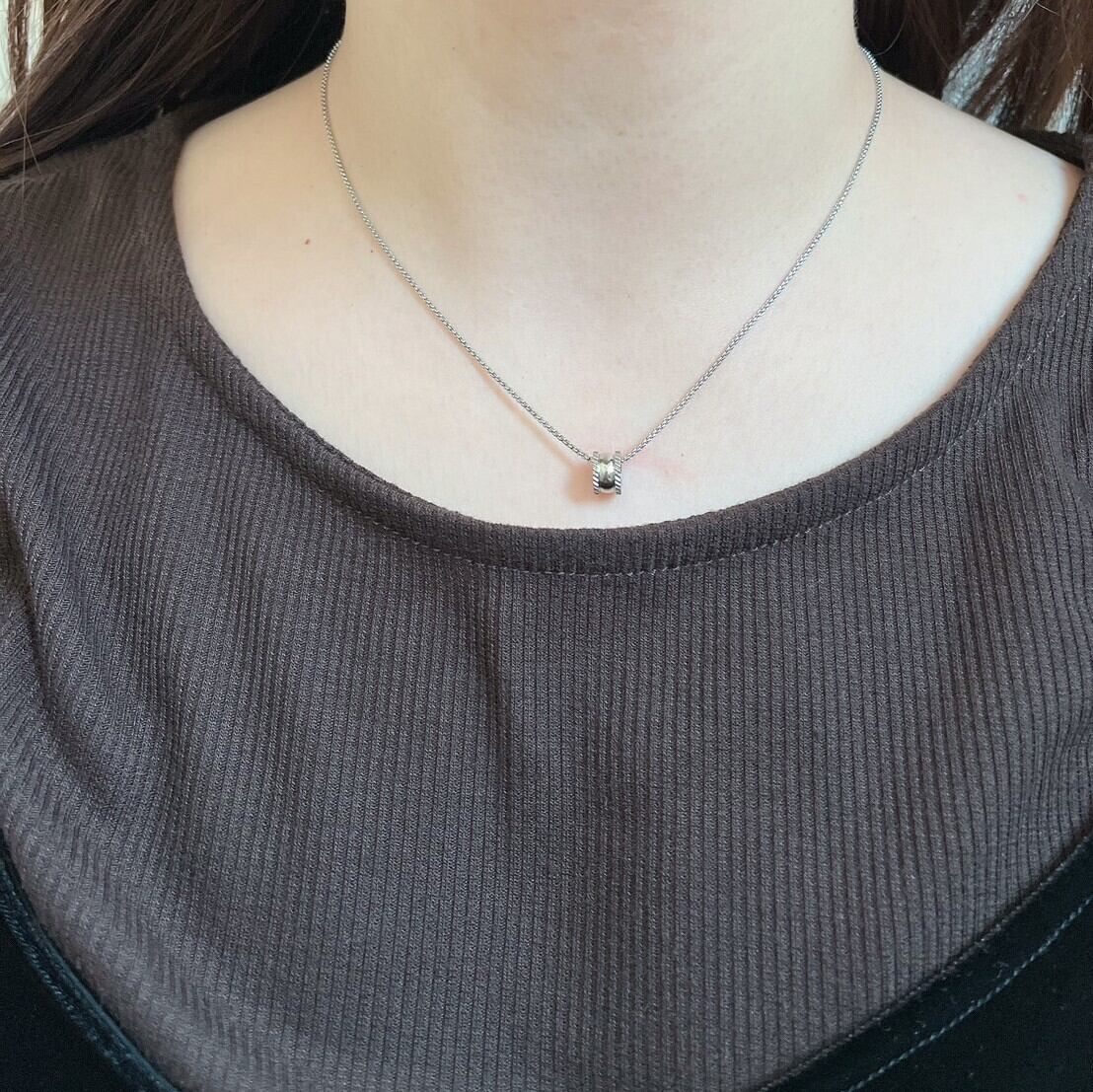 ハイネックやセーターの上にゆったりめに着けたりできるロングまで、カジュアルなファッションスタイルにも合わせやすい長さに、簡単に調整可能です。