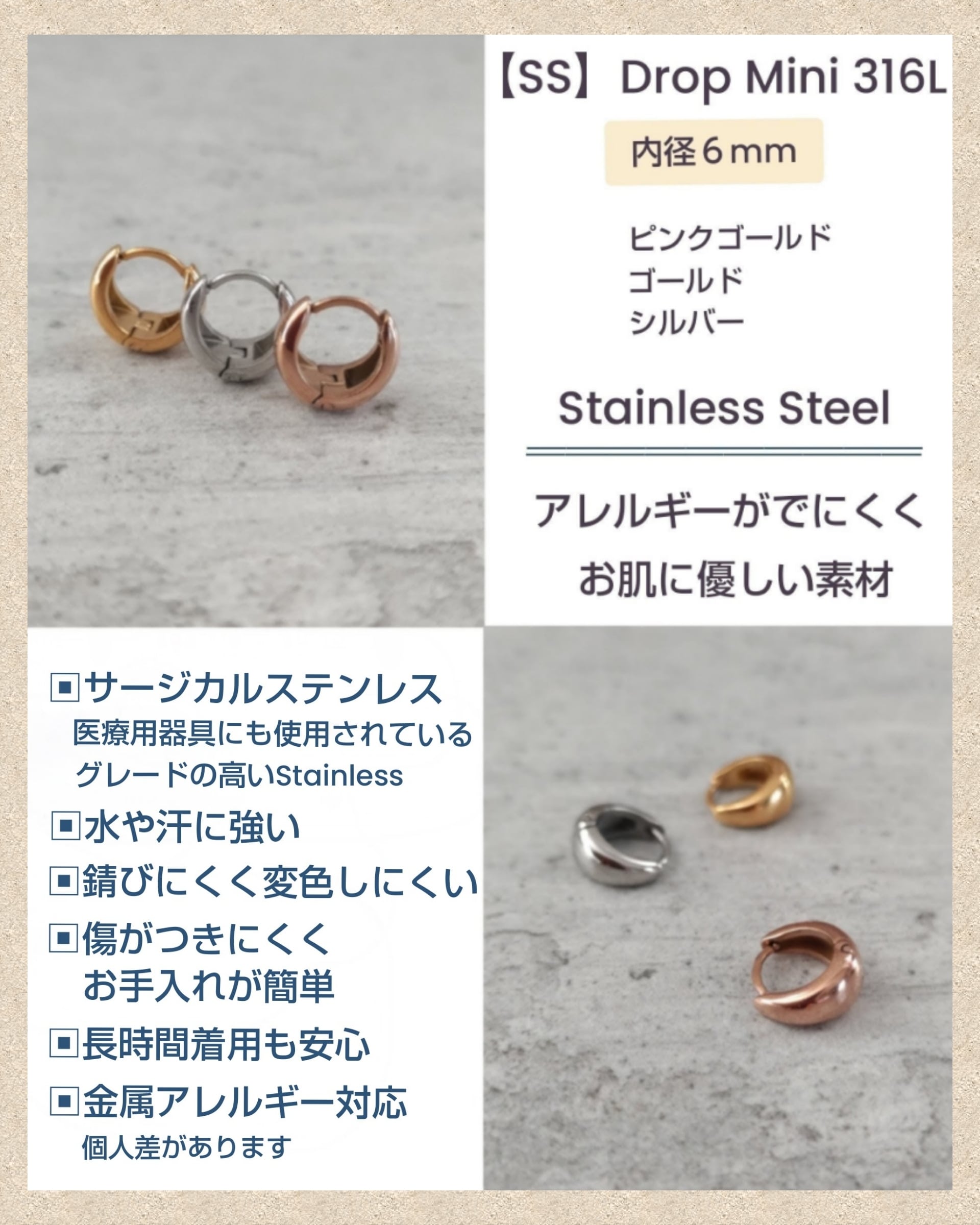 人気のDropピアスに316L(サージカルステンレス)が仲間入り。
